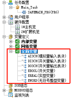 - 【全局变量】下的DI3CH/DO3CH/EBOOL/EWORD类型变量。