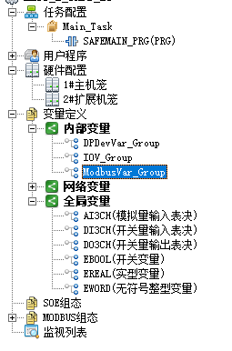 - 【内部变量】下ModbusVar_Group中的BIT和WORD类型变量。